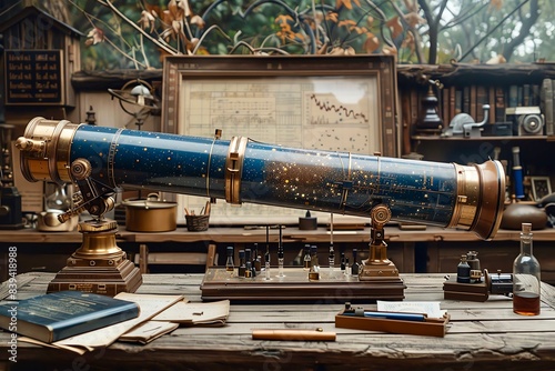 Astronomy Lab An astronomy lab with charts, telescopes, and scientific equipment