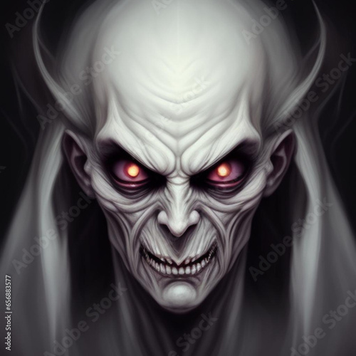 Atmospheric portrait of a sinister scary demonic ghostly apparition. Generative AI