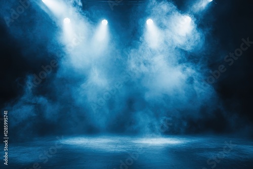 Atmospheric stage enveloped in fog, illuminated by dynamic spotlights for a captivating performance ambiance.