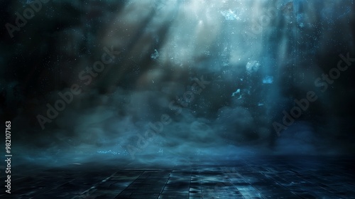 Atmospheric Underwater Scene with Sun Rays Shining Through - Mystical Ocean Depths Illustration