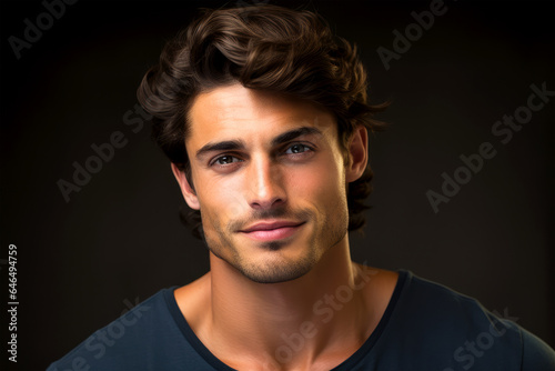 Attractive Guy Smiling On Black Background. Ai Generated
