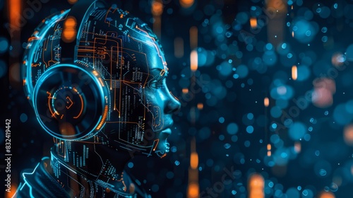 audio AI, digital background. copy space