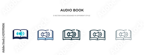 audio book icon in different style vector illustration. two colored and black audio book vector icons designed in filled, outline, line and stroke style can be used for web, mobile, ui