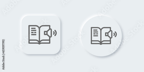 Audio book line icon in neomorphic design style. Learning signs vector illustration.