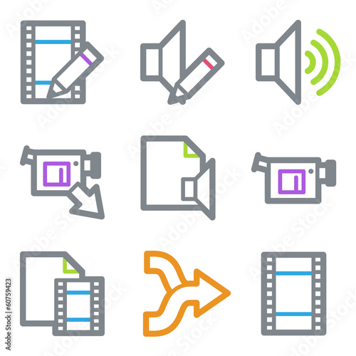 Audio video edit web icons, color line contour series