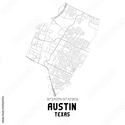 Austin Texas. US street map with black and white lines.