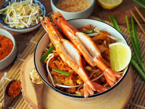 Authentic pad thai noodle with shrimp, a traditional thai food.
