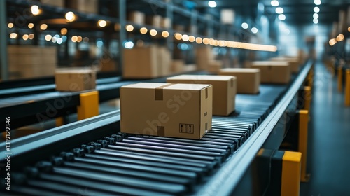 Automated conveyor belts transporting cardboard boxes in a warehouse setting