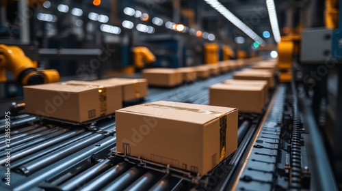 Automated conveyor system transporting cardboard boxes in a modern warehouse, showcasing efficiency