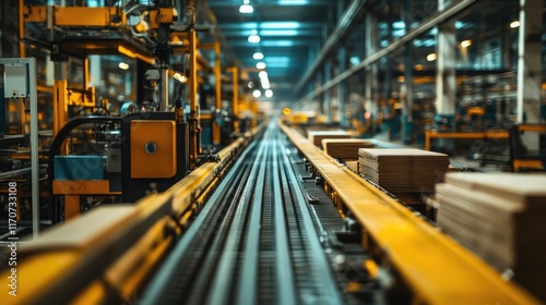 Automated Production Line: Wood Panels Moving Through Modern Factory