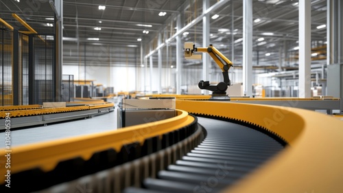 Automated robotics in modern industrial factory setting. Conveyor Belt on a Modern Factory