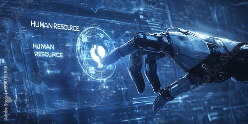 Automated Workforce Management: Robotic Hand Touching Digital Interface for Future of Work and Employee Solutions, Artificial Intelligence Integration
