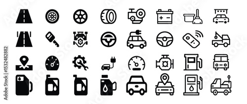 Automotive and transportation icons in silhouette isolated on transparent background