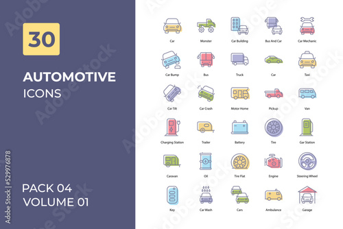 Automotive icons collection. Set vector line with elements for mobile concepts and web apps. Collection modern icons.