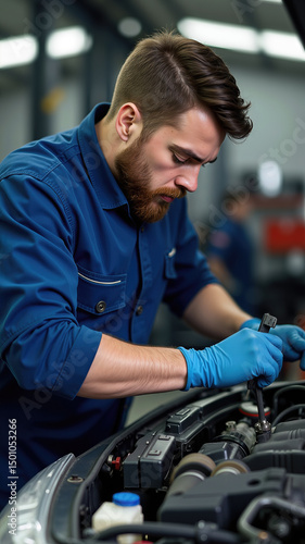 Automotive mechanic repairmen checking the system working engine of the engine room, check the mileage of the car, oil change, auto maintenance service concept