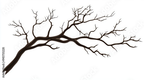 autumn bare branch without leaves isolated on white background, vector illustration