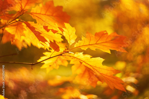 Autumn beech leaves decorate a beautiful nature bokeh background