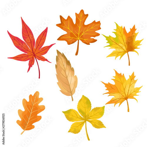 autumn color leaves isolate on white background. vector illustration