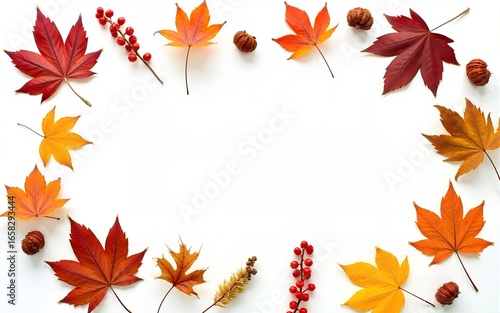 Autumn composition. Dried leaves, flowers, rowan berries on white background. Autumn, fall, thanksgiving day concept. Flat lay, top view, copy space. High quality