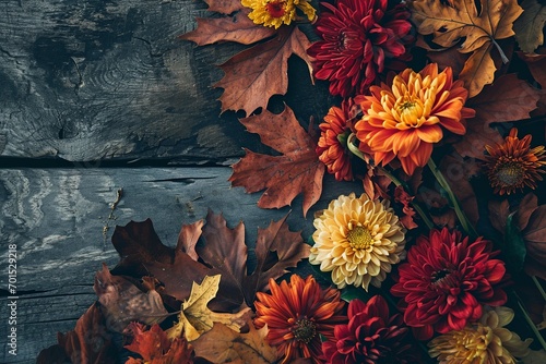 Autumn Harvest: Rustic Delight of Colorful Leaves and Chrysanthemums
