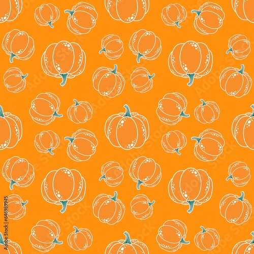 Autumn harvest vegetable seamless pumpkins pattern for wrapping paper and fabrics and linens and kids clothes