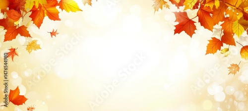 Autumn Leaves Background, Shiny Light Bokeh, Vibrant Colorful Theme for Fall and Thanksgiving