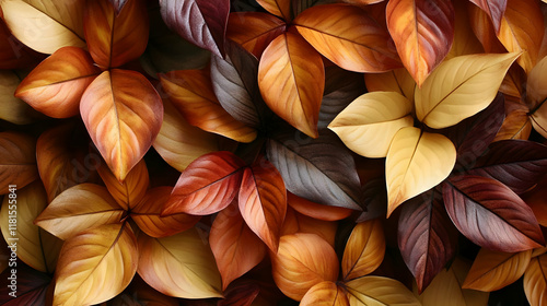 Autumn Leaves Create Warm, Cozy Background Texture, Close-Up