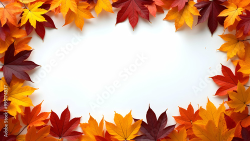 autumn leaves decoration on border of empty white color frame,forest leaves on border of white background for thanksgiving,halloween and autumn