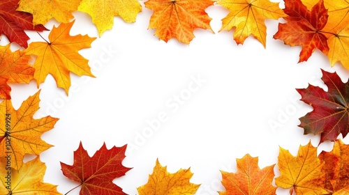 Autumn Leaves Frame White Background Copy Space