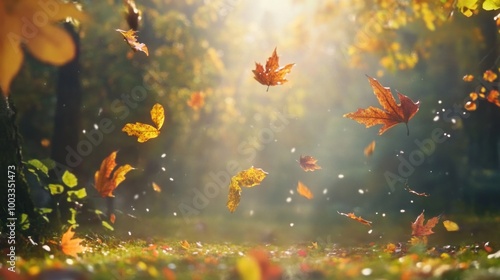 Autumn leaves gently falling and swirling, capturing the season magic in motion.
