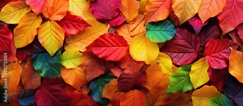 Autumn leaves in vibrant shades of red orange green brown and yellow create a captivating copy space image when viewed from above