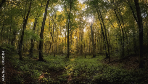 Autumn leaves on tree, vibrant colors surround generated by AI