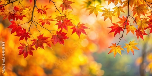 Autumn maple branch with red and yellow leaves in natural background with soft focus, autumn, maple branch, red, yellow