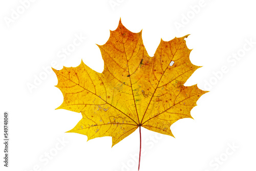 Autumn maple leaf on white background