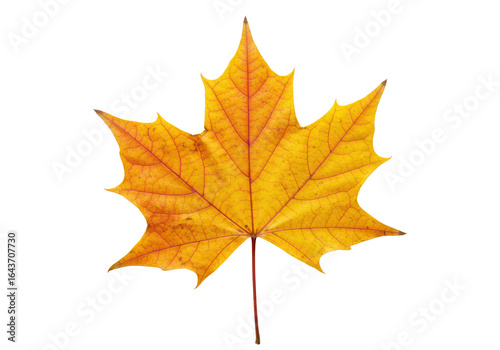 Autumn maple leaf, vibrant golden, orange, red, intricate veining, razor-sharp focus, on transparent studio background with copy space, concept of natural growth and sustainability