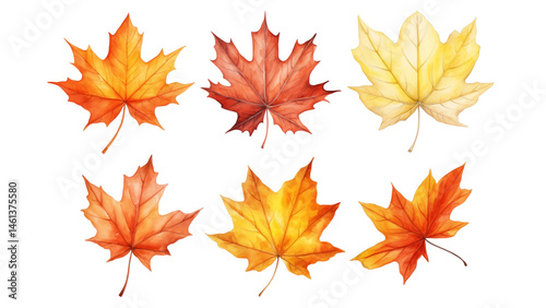Autumn maple leaf watercolour set with transparent background