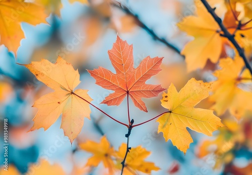 Autumn Maple Leaves Close-Up with Shallow Depth of Field