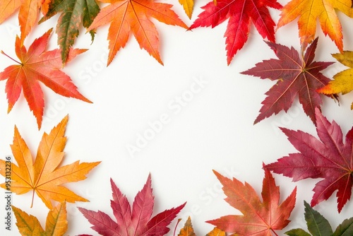 Autumn Maple Leaves Flat Lay White Background created with Generative AI