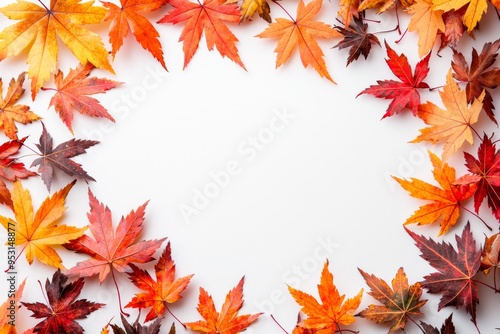Autumn Maple Leaves Flat Lay White Background created with Generative AI