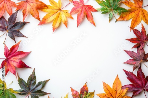 Autumn Maple Leaves Flat Lay White Background created with Generative AI