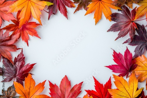Autumn Maple Leaves Flat Lay White Background created with Generative AI