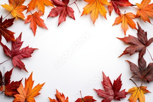 Autumn Maple Leaves Flat Lay White Background created with Generative AI