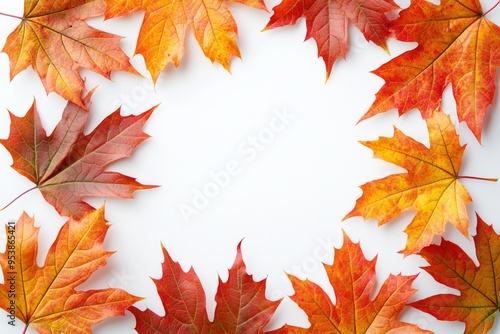 Autumn Maple Leaves Flat Lay White Background created with Generative AI