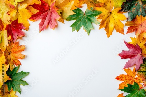 Autumn Maple Leaves Flat Lay White Background created with Generative AI