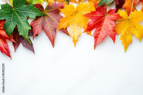 Autumn Maple Leaves Flat Lay White Background created with Generative AI