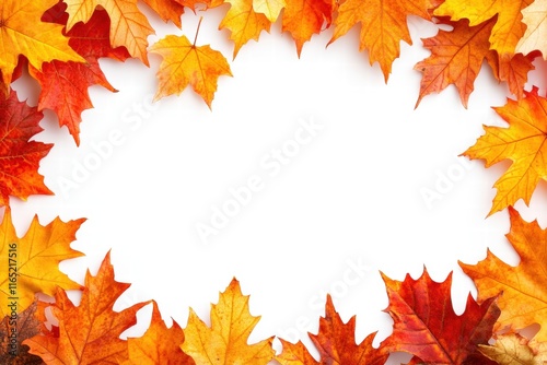 Autumn Maple Leaves Frame on White Background