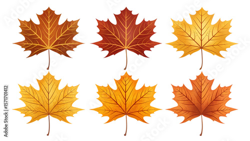 Autumn maple leaves in warm colors isolated on a transparent background fall seasonal