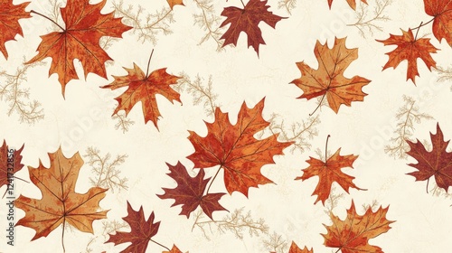 Autumn maple leaves pattern, fall design, textured background, seasonal design, textile print