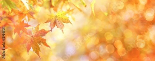 Autumn Maple Leaves with Soft Focus Background. Colorful Fall Foliage in Warm Sunlight