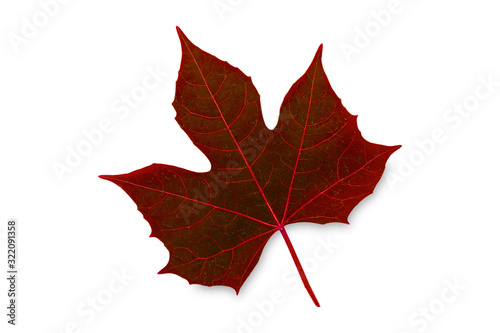 Autumn red leaf isolated on white background.
